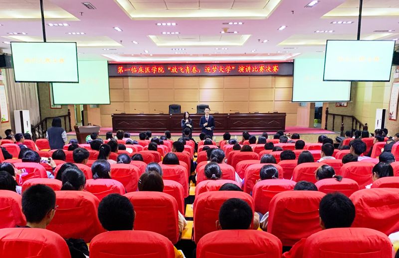 10月26日,第一临床医学院在黄金校区图书馆报告厅举办“放飞青春,逐梦大学”演讲比赛,该院学工办辅导员徐威威、学生会主席团及2019级全体学生参加。