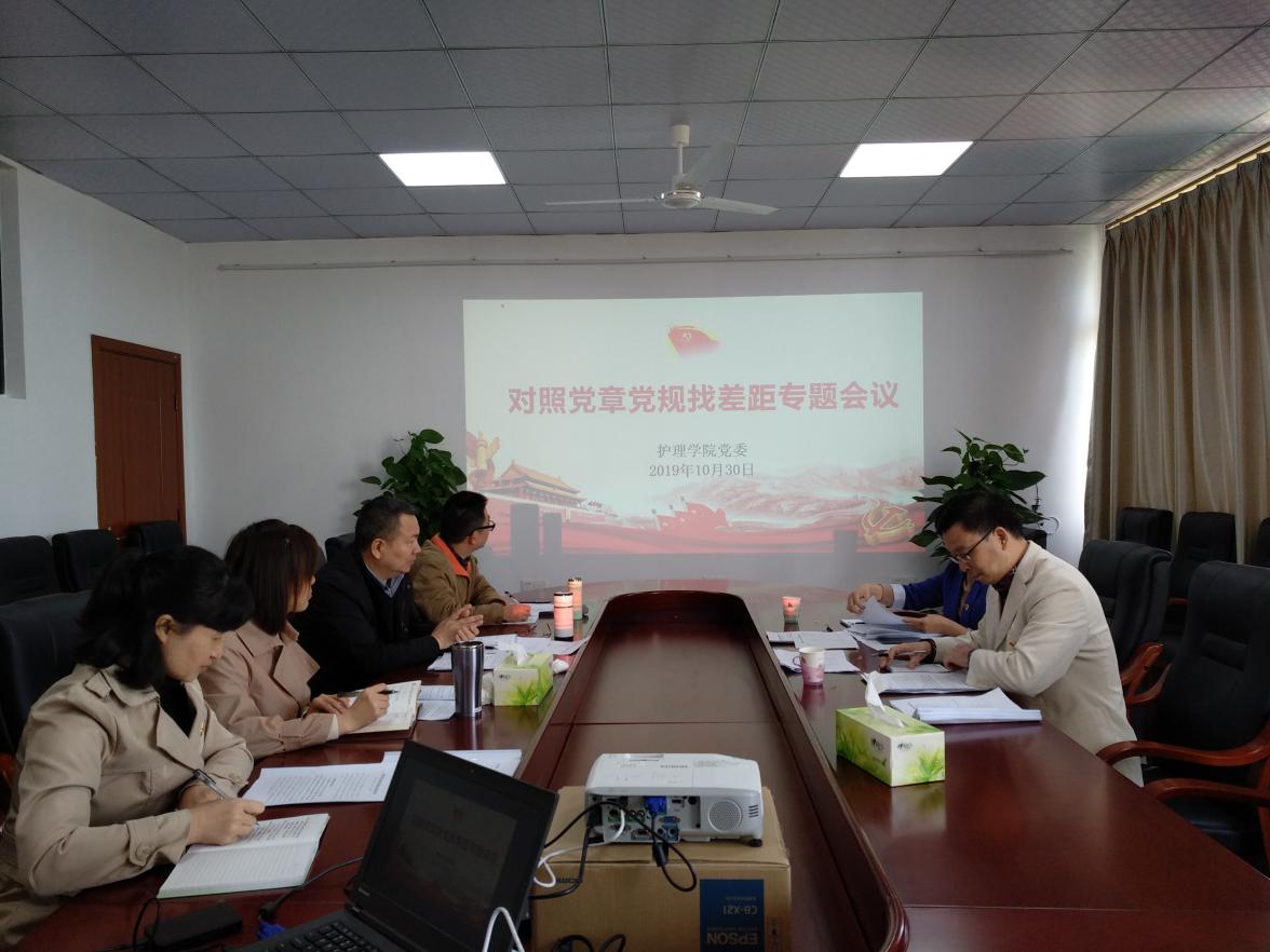 10月30日上午,护理学院党委召开主题教育对照党章党规找差距专题会议,学校主题教育督导组成员教务处副处长黄光生、纪检监察室科长赖华香莅临指导,护理学院党委书记陈志远主持会议。