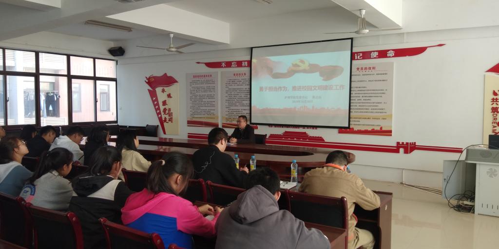 10月30日中午,护理学院党委书记陈志远以《勇于担当作为,推进校园文明建设工作》为题作专题党课报告,全体辅导员和学生干部参会。