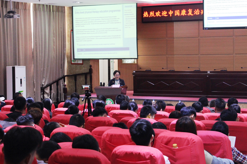 敖丽娟一行还在黄金校区图书馆报告厅作了题为《世界物理治疗师联盟(WPCT)最低教育标准认证经验》的讲座。她介绍了认证申请流程、师资队伍建设、临床实习安排、课程内容建设、实验室建设与使用并指出将为我校康复医学专业人才培养国际化提供资源并牵线搭桥。王蕾分享了昆明医科大学康复物理治疗、康复作业课程设计等内容。现场气氛热烈,师生纷纷表示收获颇丰。