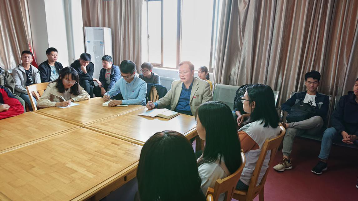 11月7日下午,校工会主席王斯坤在黄金校区行政楼8楼与联系班级2018级临床医学专业本科八班学生举行座谈会,该班班主任及全体同学参加。