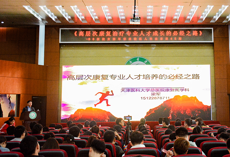 2006级运动人体科学专业的校友梁军以《高层次康复治疗专业人才成长的必经之路》为主题,分享了他的博士求学之路,从高层次康复专业领域向同学们介绍了自己的所获、所感、所得。
