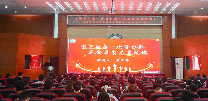 2008级运动人体科学专业的校友黄正华以《当下的每一次努力都不会辜负未来的你》为主题,以风趣幽默的言语分享了他的创业之路,引导学弟学妹们要在校四年的时间里打实专业知识,不能在最好的年华里虚度时光。