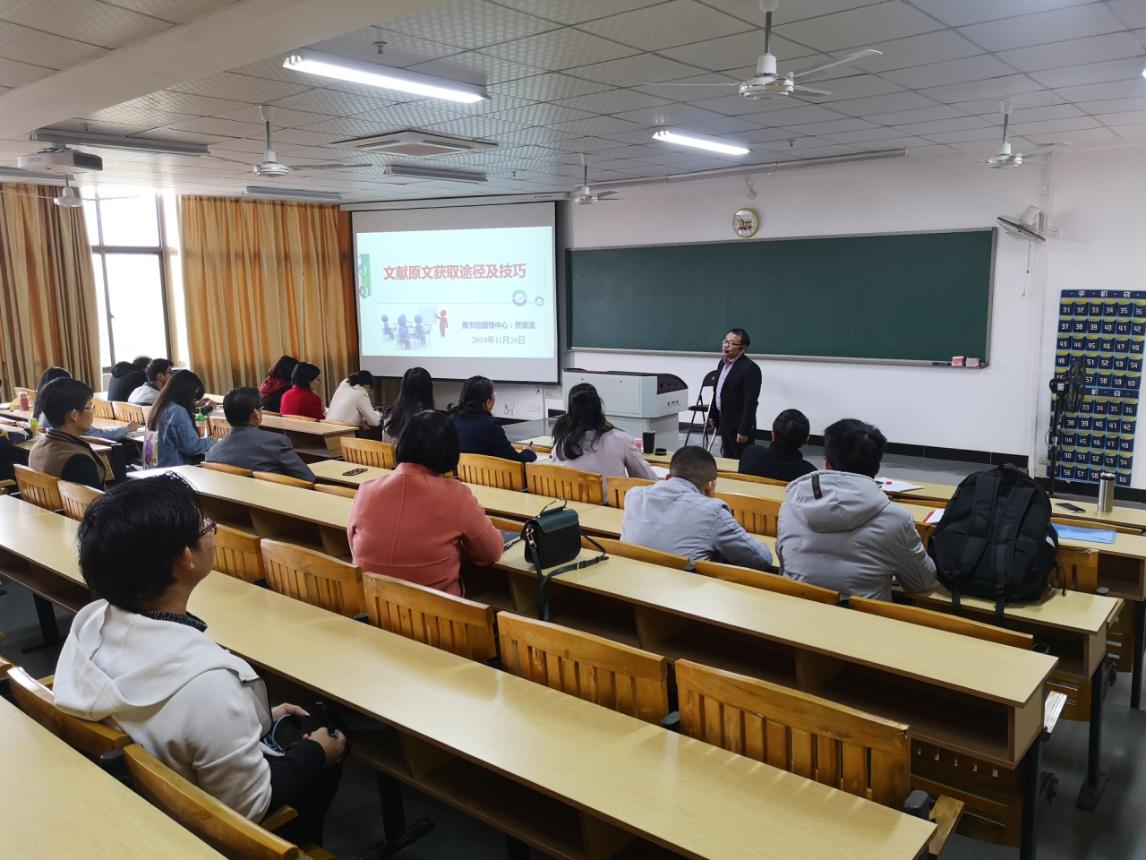 11月26日下午,黄金校区教学楼人头攒动,图书馆数据库资源及使用技巧讲座在此举行,并吸引了150余名师生前来聆听。