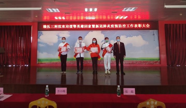 2月4日—11日,伍超、吴佳健、方小梅、胡君4人分三批逆行而上驰援湖北,分别在武汉市武昌方舱医院、随州市随县人民医院、随州市中心医院、广水市第一人民医院抗击疫情。3月19日、23日,他们结束湖北援助工作分别到赣州崇义和九江庐山集中休养。经过14天的集中隔离休养,返回医院行CT后与亲人、同事相聚。