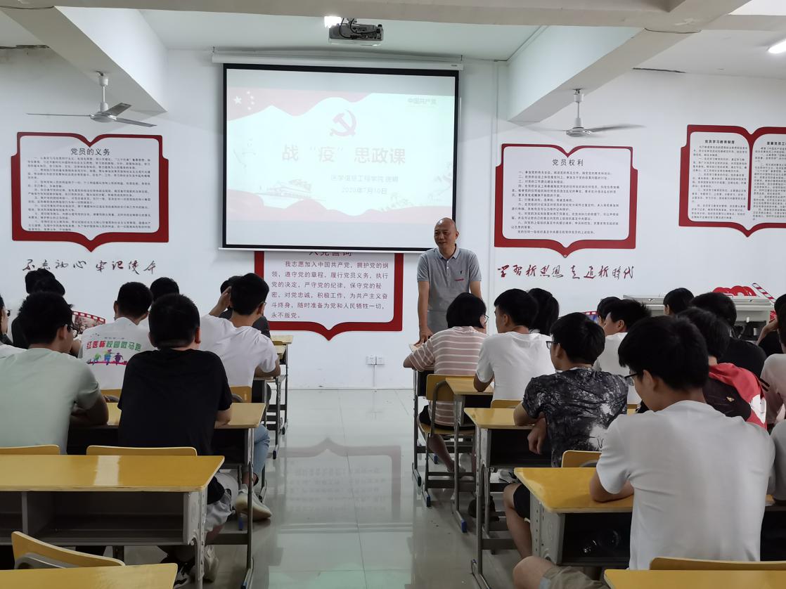 7月10日上午,医学信息工程学院党委书记唐明在黄金校区为联系班级2019级物联网工程本科(1)班全体学生上了一堂战“疫”思政课。