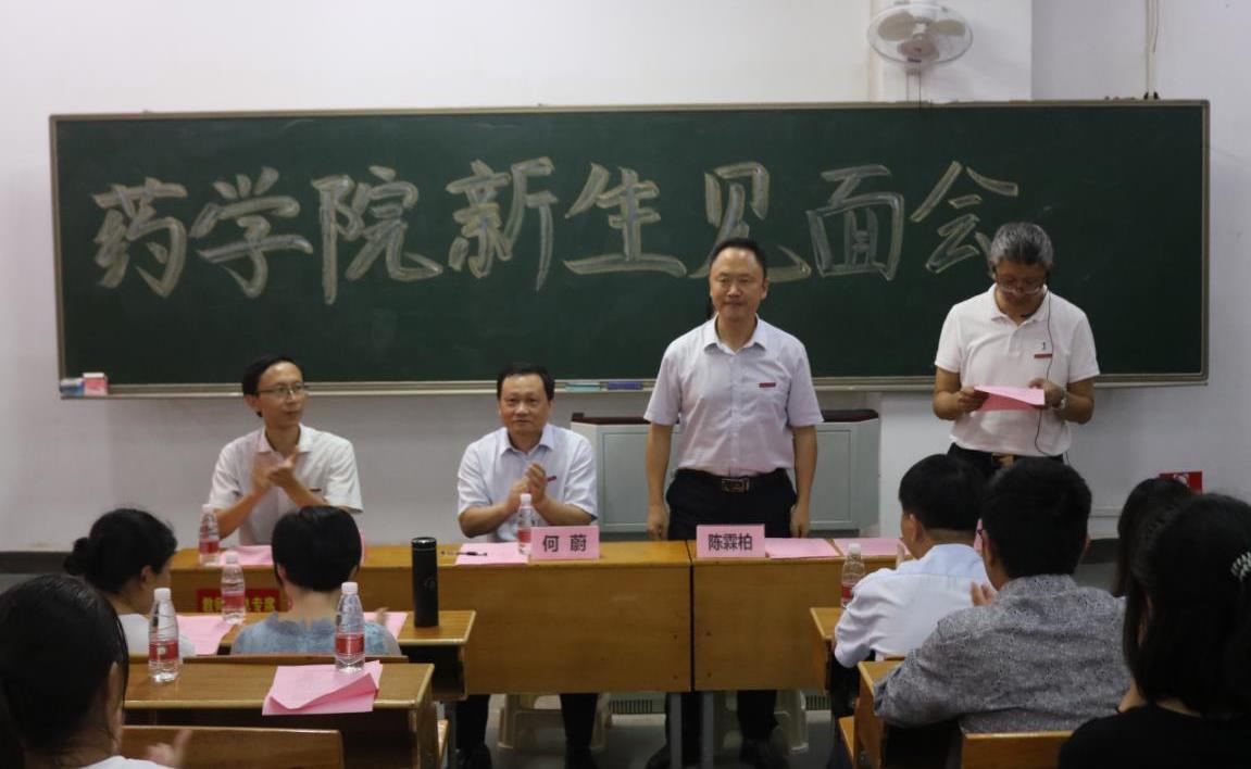 9月14日晚,药学院于黄金校区第一教学楼举行了2020级新生见面会。学院党委书记陈霖柏,院长何蔚,副院长赖日勇、丁冶春,各科室负责人、全体博士教师、学工办辅导员、2020级新生班主任及全体新生参加。见面会由赖日勇主持。
