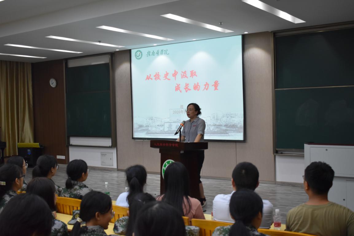 连璐为全体新生做了题为“在校史中汲取成长的力量”的专题讲座,一幅幅弥足珍贵的老照片,一则则令人动容的小故事,让同学们对赣医79年的发展历程有了更进一步的认识,学习和吸取学校发展传承下来的思想财富,激发新时代大学生的奋斗精神和拼搏意志。