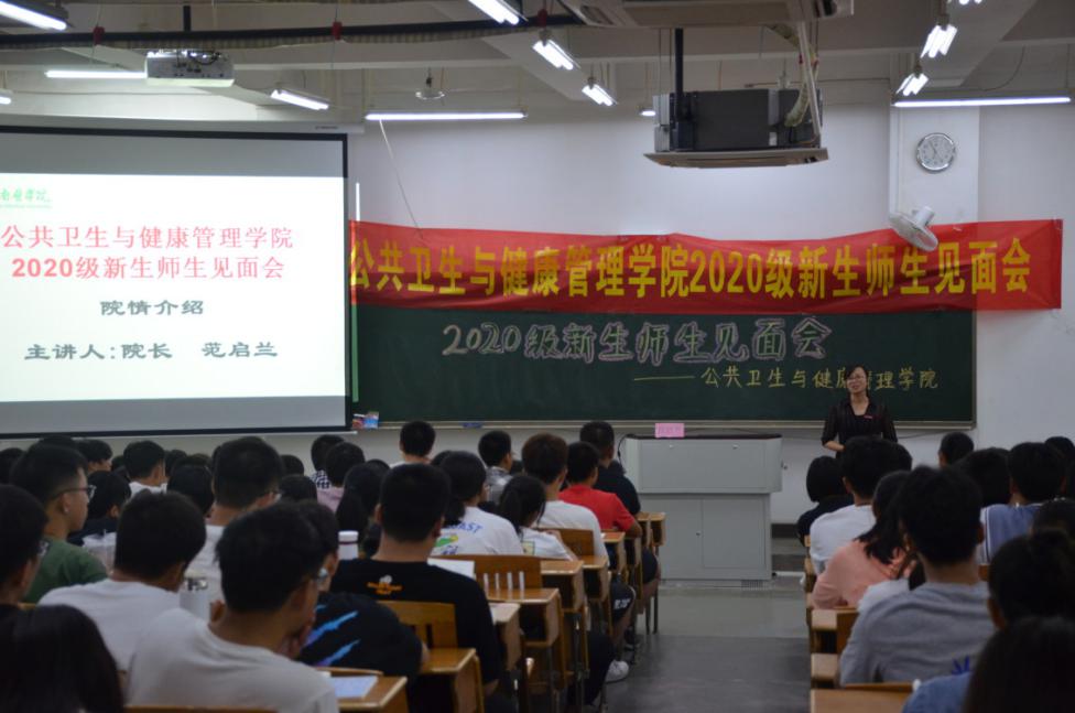 9月16日晚,公共卫生与健康管理学院在黄金校区举行2020级新生见面会。该院院长范启兰、各系室主任、各专业负责人、学工办全体辅导员、2020级新生班主任及全体新生参加。