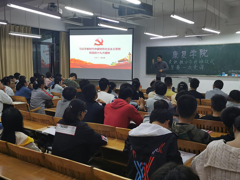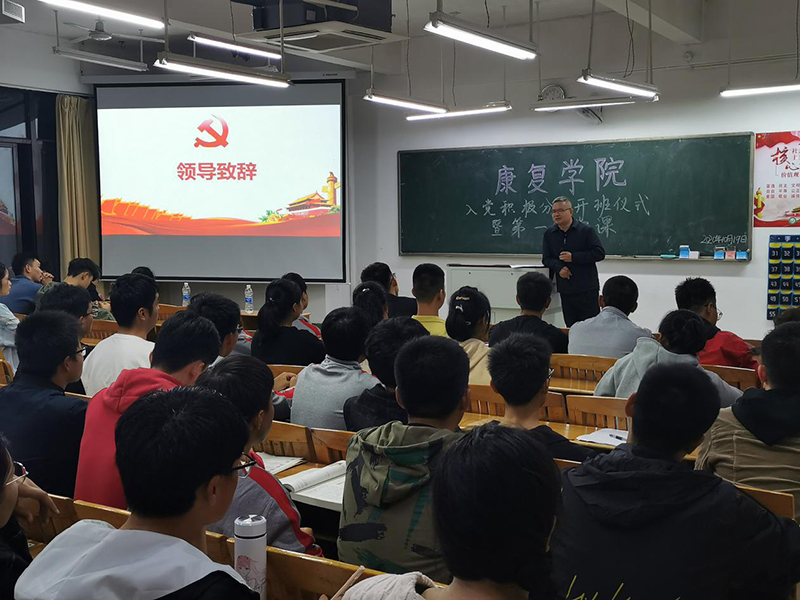 10月19日晚,康复学院在黄金校区第一教学楼开展2020年下半年入党积极分子培训开班仪式暨第一次党课。该院党委书记陈建文、党委副书记叶贞丽出席,学工办主任袁阳康、辅导员周伟以及全体入党积极分子参加。