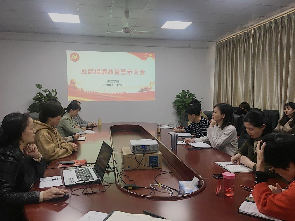 10月21日下午,护理学院在章贡校区召开反腐倡廉教育警示会,该院全体教职工参会。
