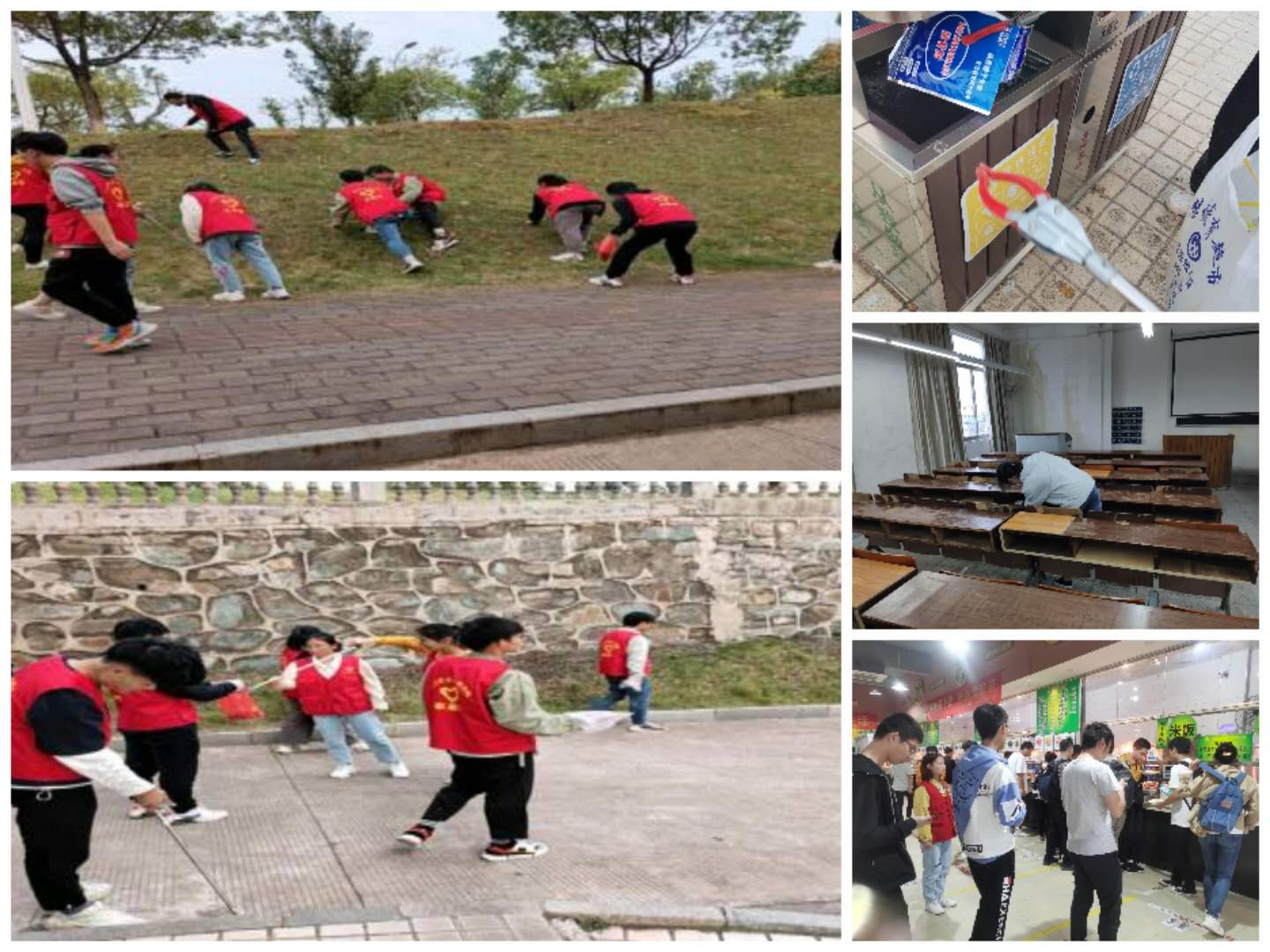 本次志愿者队伍由该院党员和受资助的学生组成,分三个小组开展校园清扫、垃圾分类、食堂文明督导等多项志愿活动。