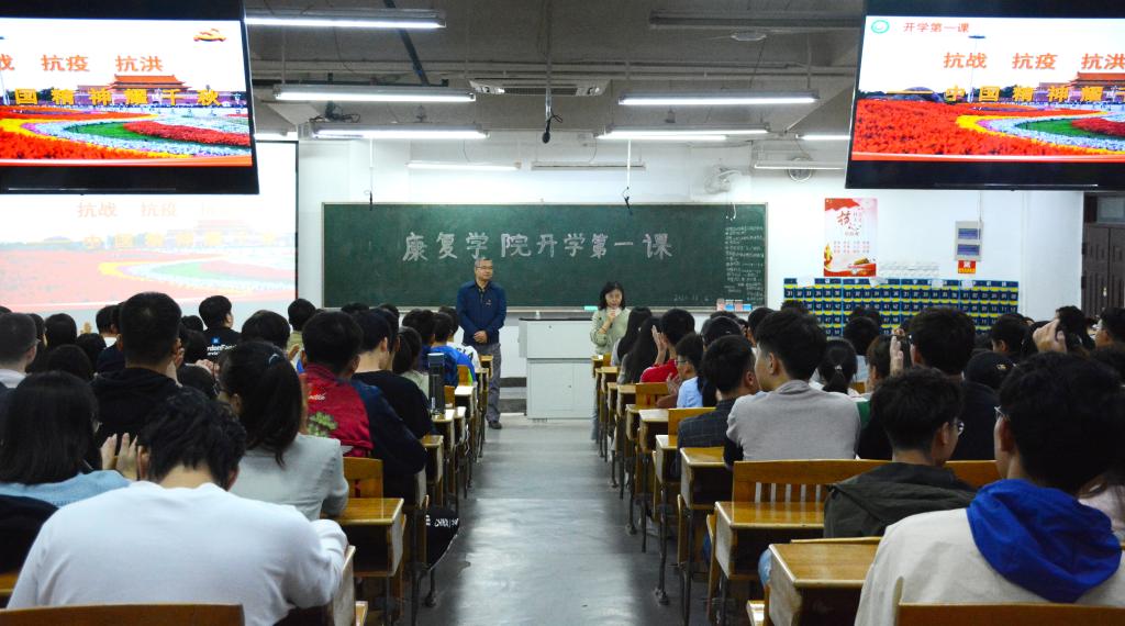 11月6日晚,康复学院领导班子分别在黄金校区为该院全体在校生上开学第一课。该院学工办老师及650名学生参加。