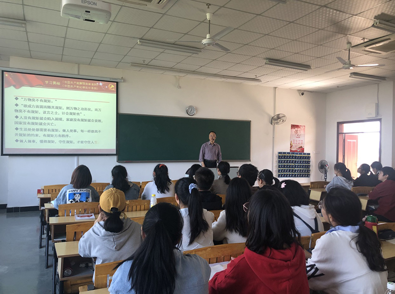 11月10日,药学院党委书记陈霖柏给学生上了一堂以“遵规守纪,争做德技双馨的新时代赣医青年”为题的廉政教育课,药学院学生党员、入党积极分子参加。