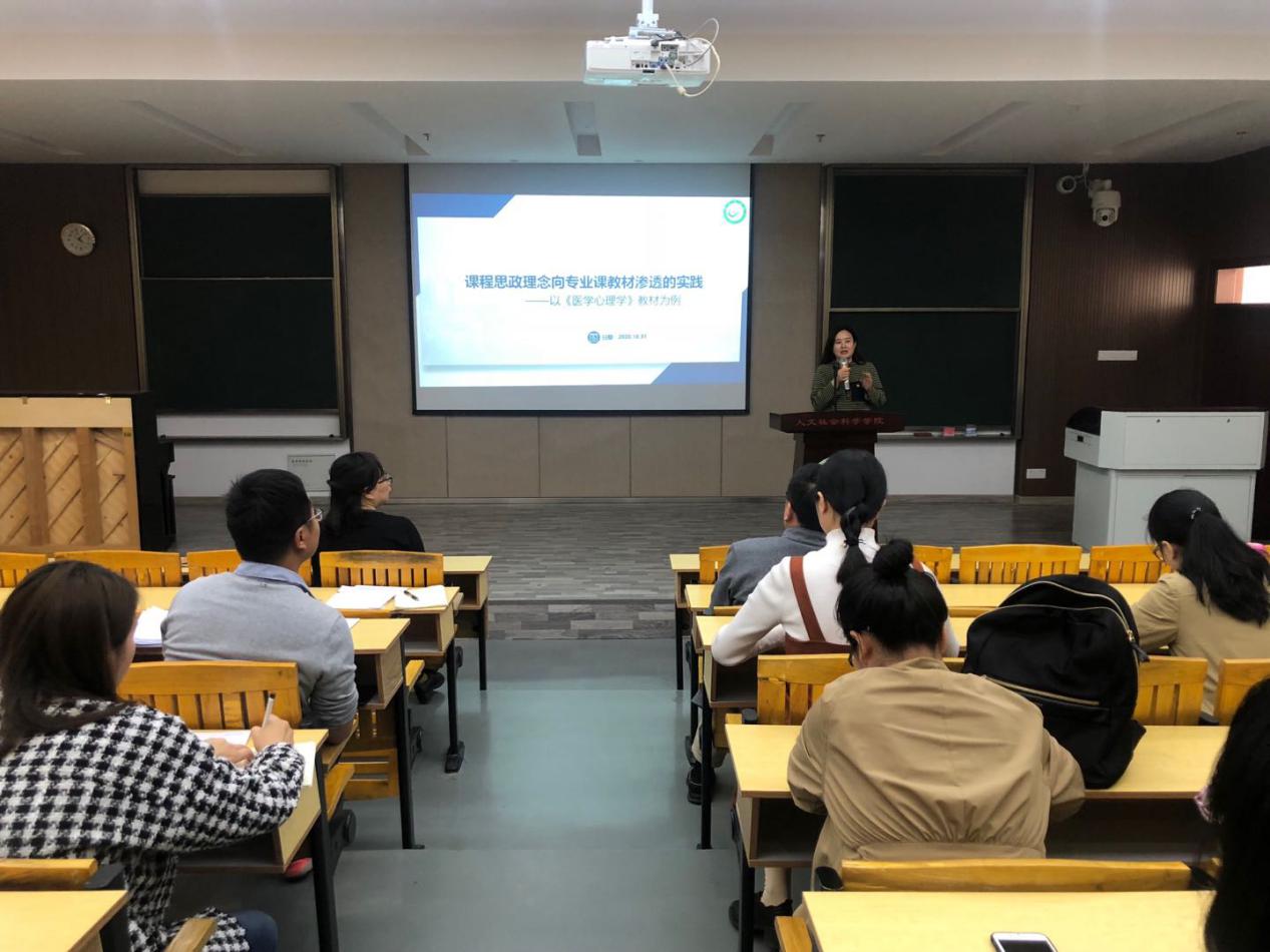 11月10日下午,人文社科学院举办课程思政专题讲座,该院党委委员、心理学系主任唐宏作了《课程思政理念向专业课教材渗透的实践》专题讲座,该院全体教职工参会。