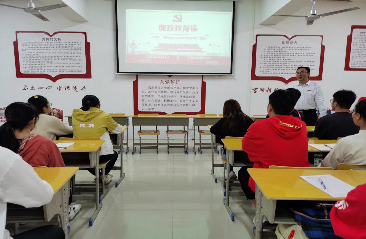 11月13日,医学信息工程学院党委副书记雷音给学生上了一堂主题为“坚持党性原则 涵养清风正气”的廉政教育课,该院学生党员、入党积极分子参加。