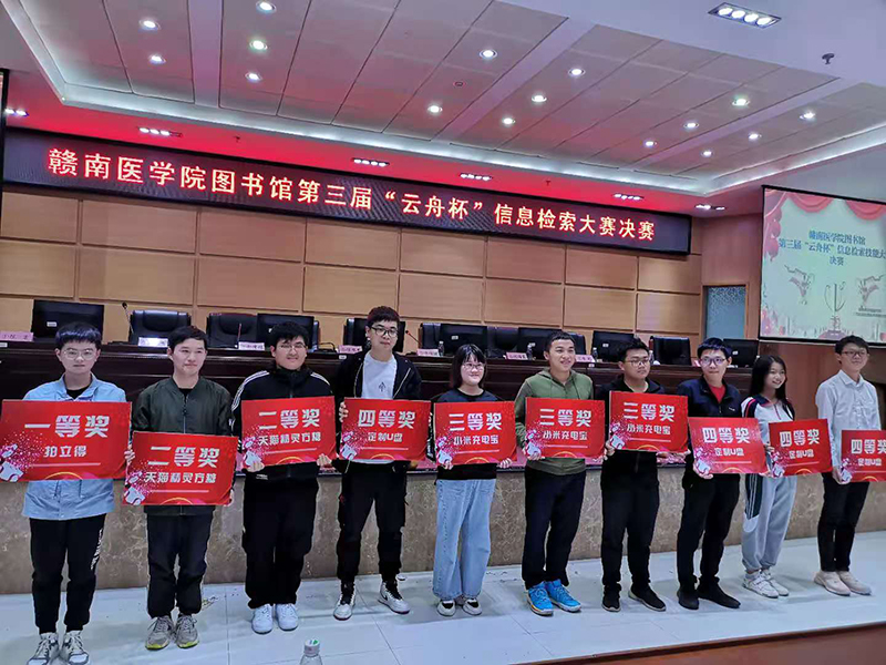 11月16日晚, 图书馆与超星数字图书馆联合举办的第三届“云舟杯”信息检索技能赛决赛在黄金校区举行。20 19级临床医学专业本科1班向泽林荣获一等奖,2019级生物信息学专业本科班陈思杰、2019级临床医学专业本科11班陈康获得二等奖。