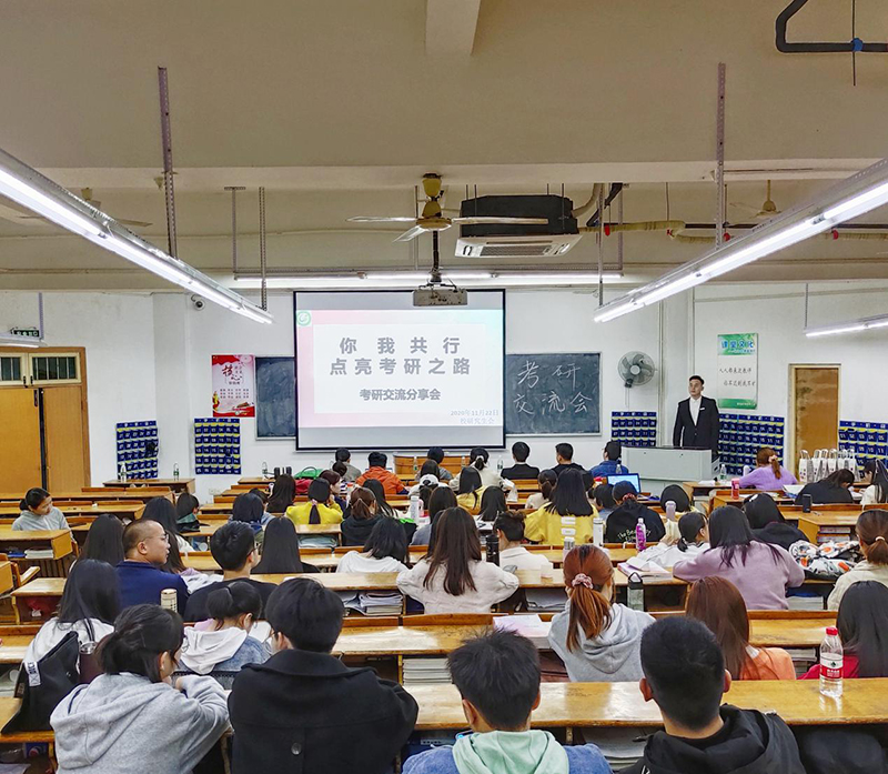 11月22日晚上,研究生会在章贡校区举办了主题为 “你我同行,点亮考研之路”的考研经验交流分享会,并邀请了郭忠、姬丙哲、杨忠源、补维、吕俏及刘欣等几名初试成绩优异的研究生作为分享会的主讲嘉宾,吸引了近百名本科生参加活动。