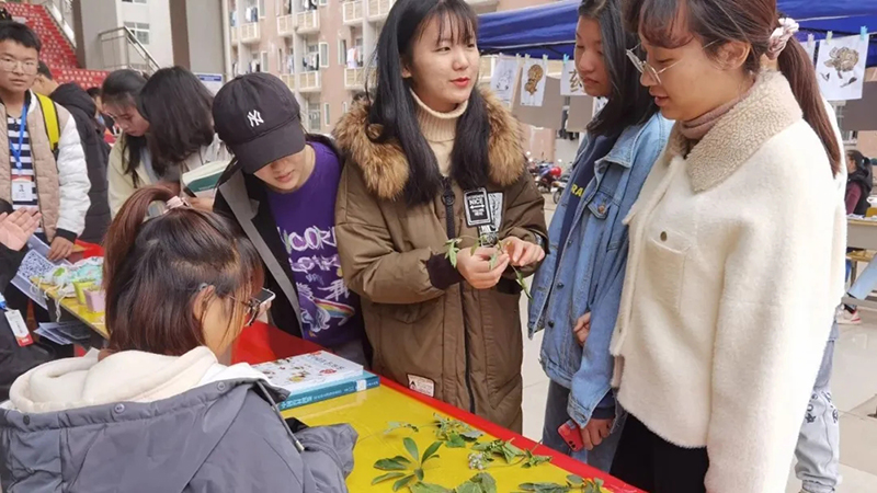 活动中,同学们通过展示自制中医药香包、标本和药材贴画、叶脉书签等,为广大同学和社区居民认真讲解中医药文化知识、中药材辨识等;发放中医药保健宣传册,引导大家养成健康的生活方式与生活习惯。
