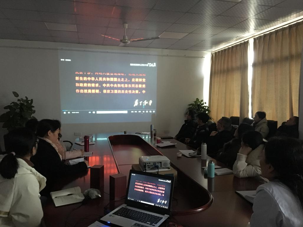会上组织学习了习近平总书记在纪念中国人民志愿军抗美援朝出国作战70周年大会上的重要讲话精神,集中观看了大型电视纪录片《为了和平》第一集《正义担当》。