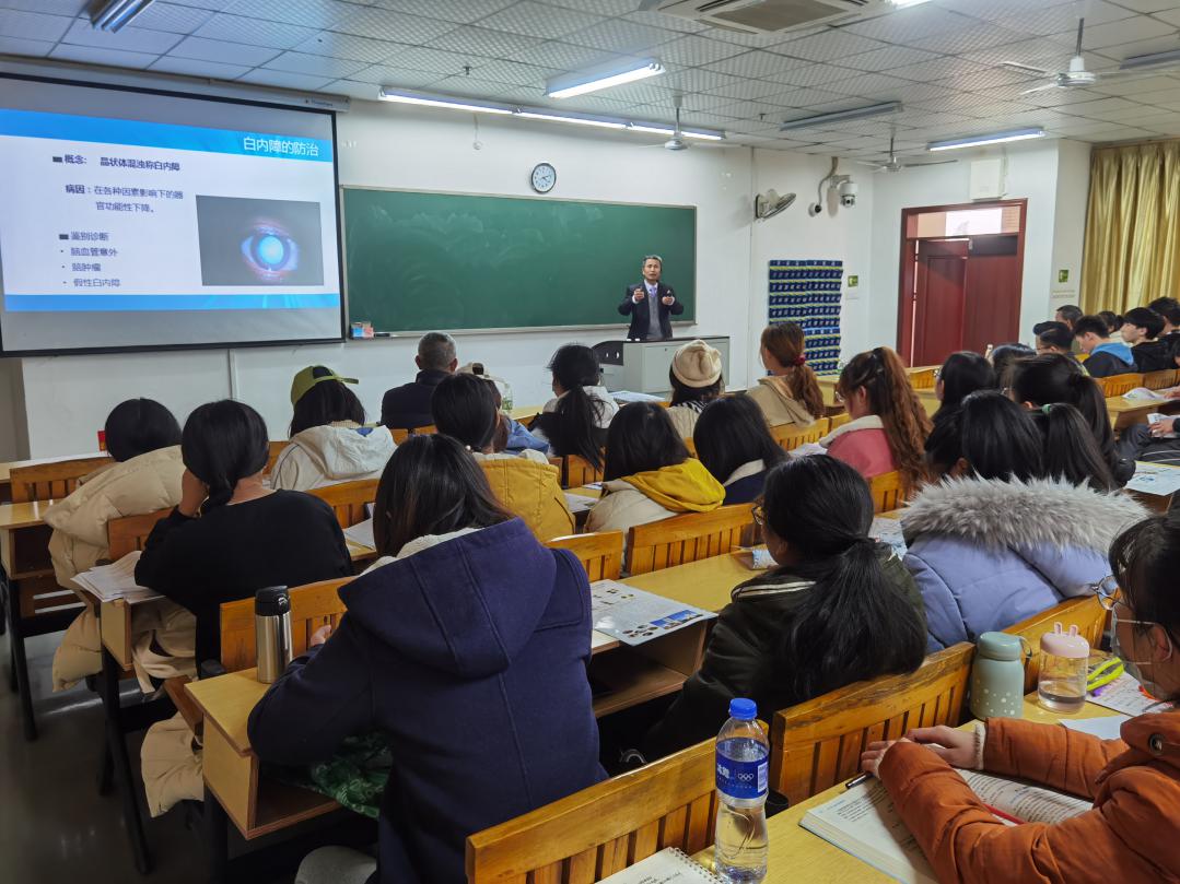 12月23日下午,药学院在黄金校区开展“五爱”主题活动。邀请了赣州启明星眼科医院创始人、院长刘其生作“爱眼护眼”知识讲座,学院100余名师生聆听。