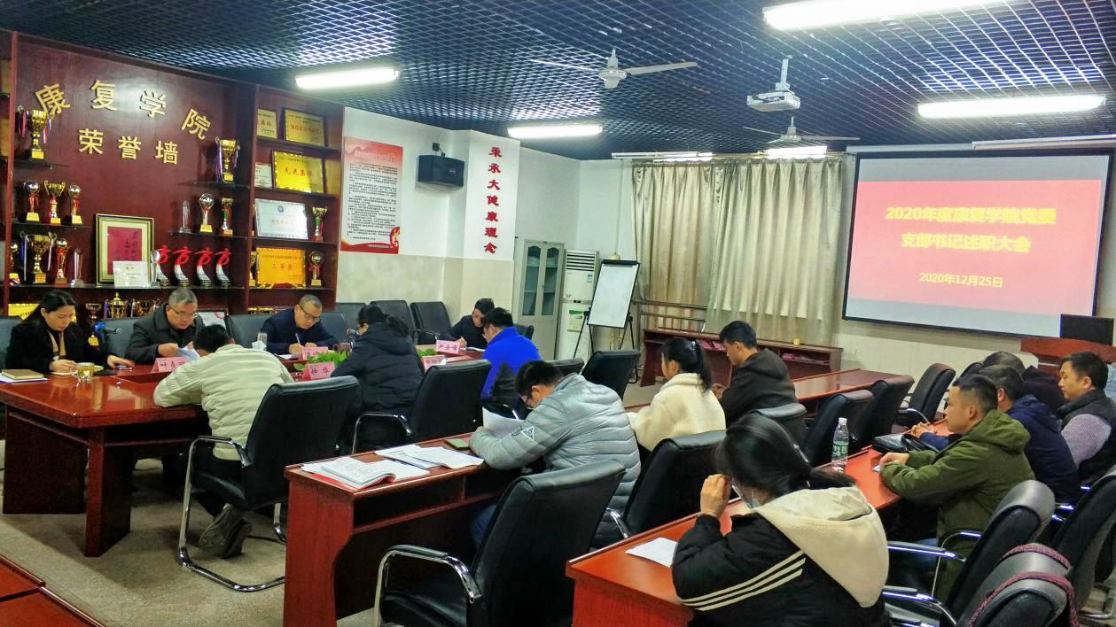 12月25日上午,康复学院举行2020年度党支部书记述职大会,会议由该院党委副书记叶贞丽主持。该院领导班子成员、各党支部书记以及师生党员代表参加。本次会议以党委会扩大会议形式开展,述职和评议一并进行。