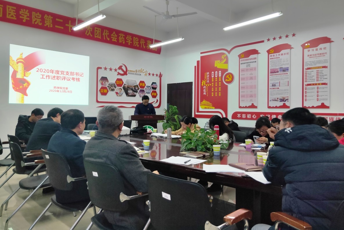 12月28日下午,药学院在黄金校区举行2020年度党支部书记述职评议会,该院党委书记陈霖柏主持会议。该院领导班子成员、各党支部书记以及科室主任、师生党员代表参加。本次会议以党委会扩大会议形式开展,述职和评议同步进行。