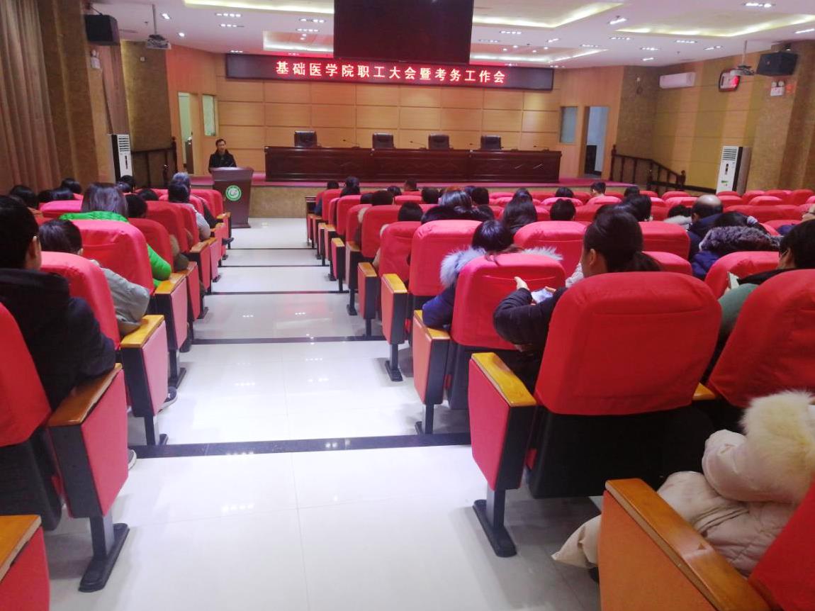 1月7日下午,基础医学院在黄金校区召开全院职工大会暨考务工作会,对期末工作进行布置及安排。会议集中学习了《赣南医学院监考工作实施细则(试行)》,就有关考务工作安排进行强调,该院院长谢水祥就做好期末监考工作提出具体要求,一是全院教职员工必须高度重视监考工作,严格按学校要求认真履行监考义务;二是严格按照学校学院有关考试操作规程执行,对期末考试后阅卷、试卷分析、试卷归档等工作要严格按照学校要求,规范执行。