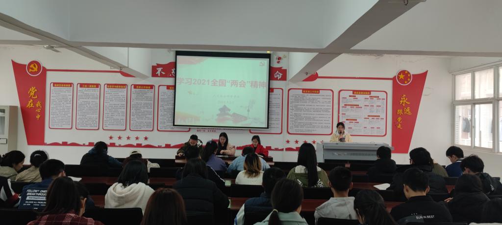 3月11日晚,人文社科学院学生党员和学生骨干汇聚一堂,认真学习“两会”精神。辅导员领学了《政府工作报告》,并结合自身学习实际,畅谈感想体会。