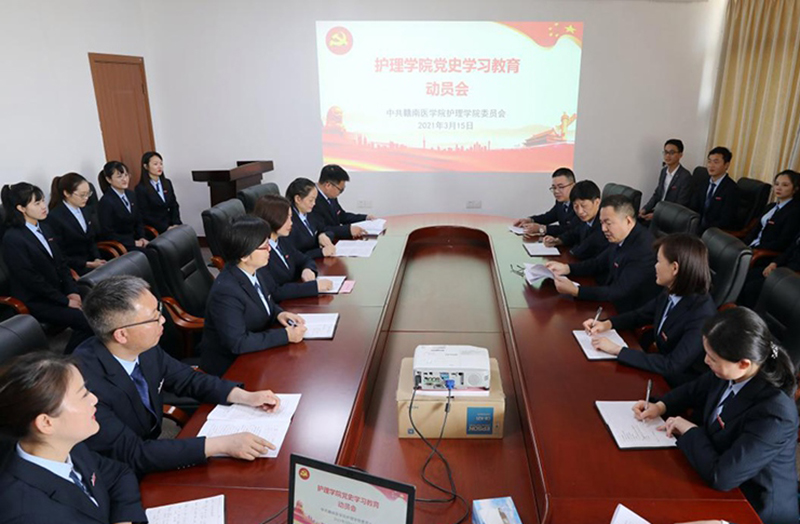 3月15日上午,护理学院召开党史学习教育动员会。该院党委书记陈志远作动员讲话,全院教职工参加会议。