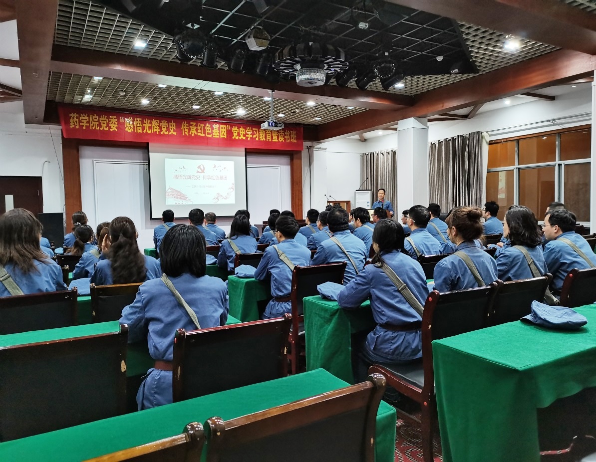 专题党课。药学院党委书记陈霖柏以《感悟光辉党史 传承红色基因》为题讲述了一堂生动的党课,参加人员进行了交流。