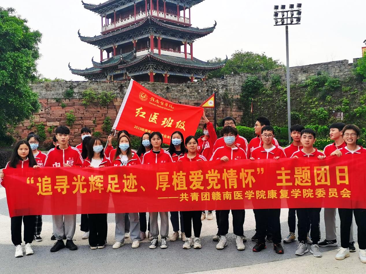 4月18日,康复学院红医班级在赣州市区开展“追寻光辉足迹,厚植爱党情怀”主题团日活动。该院团委委员周伟、2019级康复治疗学2班25名学生团员代表参加活动。