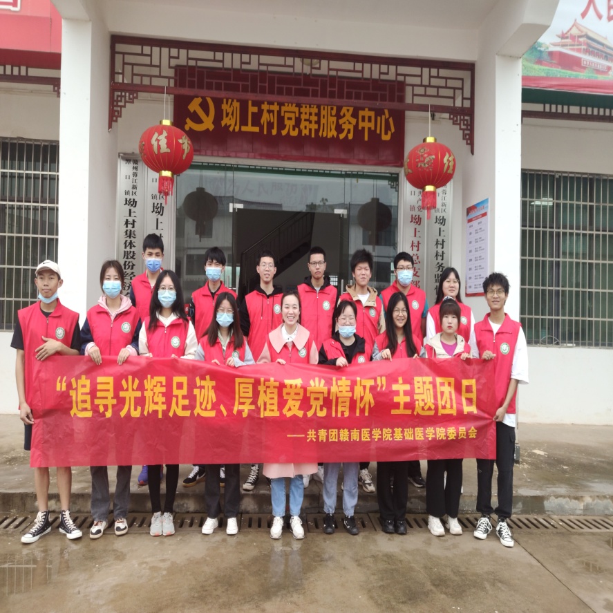 近日,为深入推进党史学习教育活动,感受党领导下农村新变化,坚定政治方向,永远跟党走,基础医学院团委前往潭口镇坳上村开展“追寻光辉足迹、厚植爱党情怀”主题团日活动。