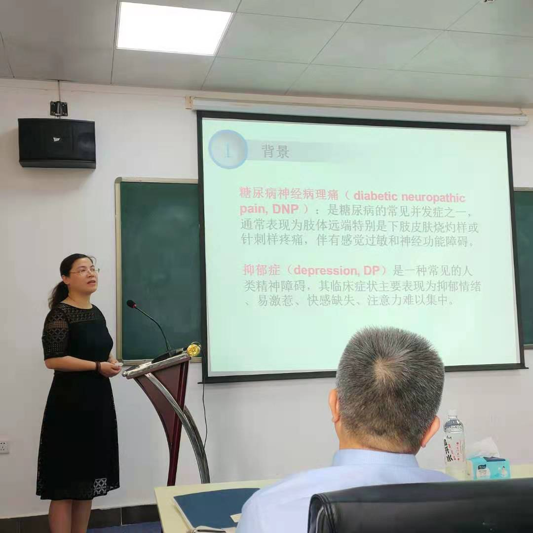 高云长期从事神经病理性痛研究,会上她详细介绍了其课题组的最新研究进展,揭示了二氢杨梅素在治疗糖尿病神经病理性痛合并抑郁症中的价值。期间她与大家积极互动,认真解答师生提出的问题,现场讨论气氛热烈。