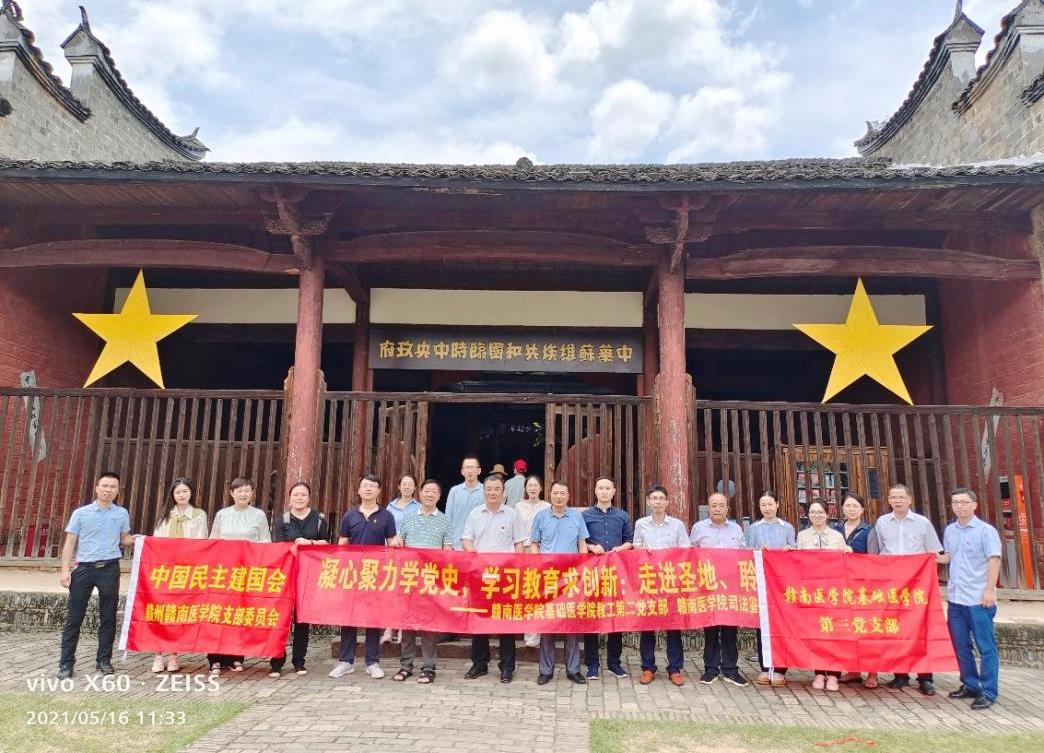 5月16日,基础医学院第二、三党支部联合司法鉴定中心赴瑞金开展“凝心聚力学党史,学习教育求创新:走进圣地、聆听党课”为主题的党史学习教育活动。