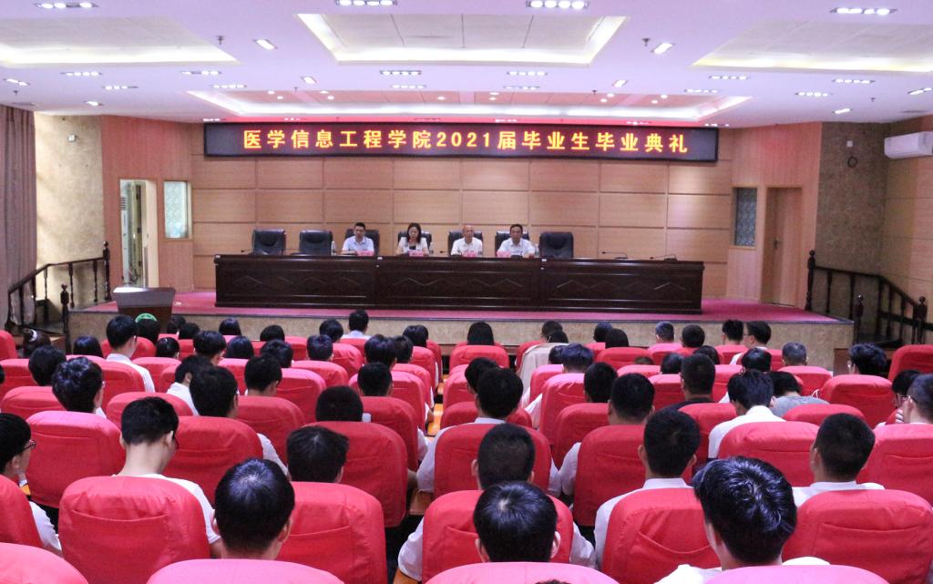 5月20日上午,医学信息工程学院2021届毕业生毕业典礼在黄金校区图书馆学术报告厅举行,学院院长盛瑶环、党委书记唐明、副院长钟海舰和教师代表以及全体毕业生出席毕业典礼,毕业典礼由学院党委副书记雷音主持。