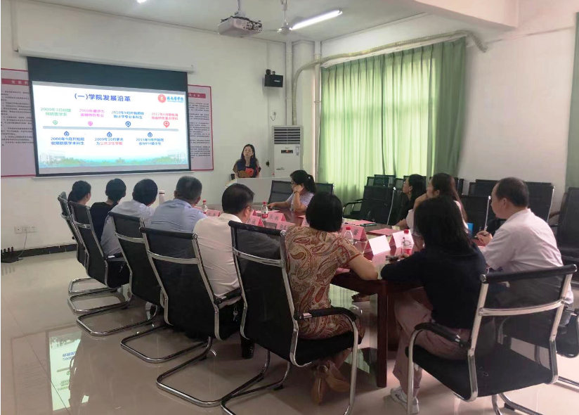 黄诚介绍了公共卫生与健康管理学院成立沿革与科室设置、学科与专业建设、实训平台建设、学生考研与招生就业情况。