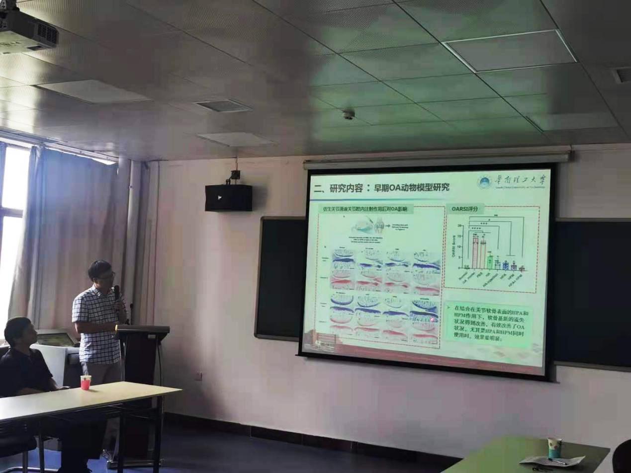 谢仁箭做了《促软骨再生和治疗早期骨关节炎仿生滑液的构建及其润滑机理研究》的报告。他从骨关节炎研究现状出发,提出了软骨润滑性能的降低是骨关节炎症诱发源头理念,并针对性的从成分和结构仿生设计构建出仿生关节滑液,系统性阐明了其作用机理。相关动物模型的建立填补了目前软骨润滑与软骨再生之间的研究空白,并为骨关节炎早期通过润滑治疗的策略提供了理论依据。