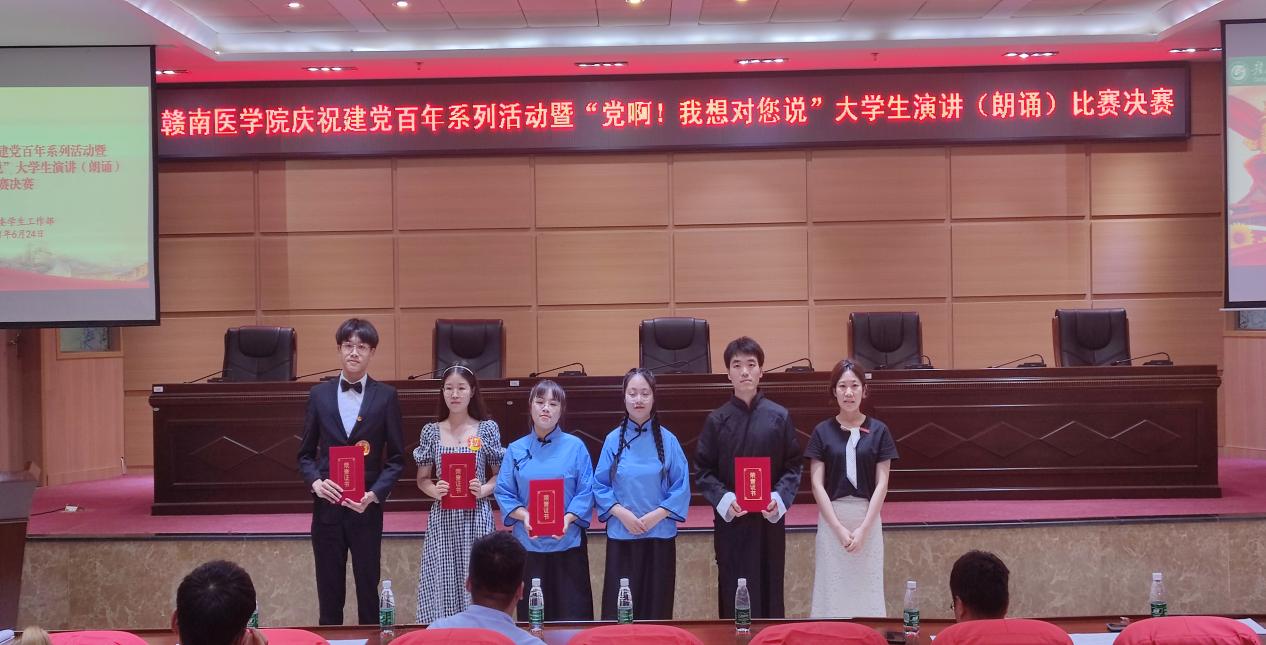 比赛中,参赛学子精心准备,各展所长,感情真挚,采用主题演讲(朗诵)等多种形式表达了对党的深情告白,对祖国的赤子热爱之情,充分展现了赣医学子青春心向党,永远跟党走的奋进姿态和理想信念。