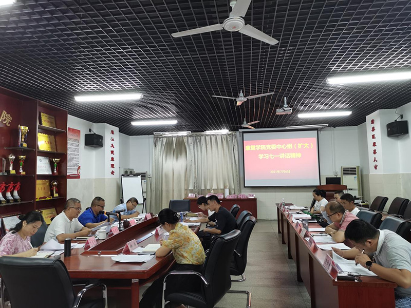 7月6日下午,康复学院党委理论学习中心组专题学习习近平总书记在庆祝中国共产党成立100周年大会上的重要讲话精神,康复学院党委领导班子成员、各支部书记及科室负责人参加。