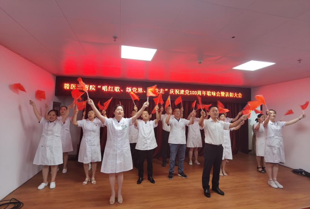 7月8日,三附院举办“唱红歌、颂党恩、跟党走”庆祝建党100周年歌咏会暨表彰大会。该院全体院领导,中层干部、职工代表等100余人,以八个支部为单位,深情讴歌伟大的中国共产党,抒发赣医三附院人在党的领导下开新局、谱新篇的壮志豪情,以昂扬奋进的姿态献礼党的百年华诞。同时,大会开启线上直播,约1500余人观看了现场直播。