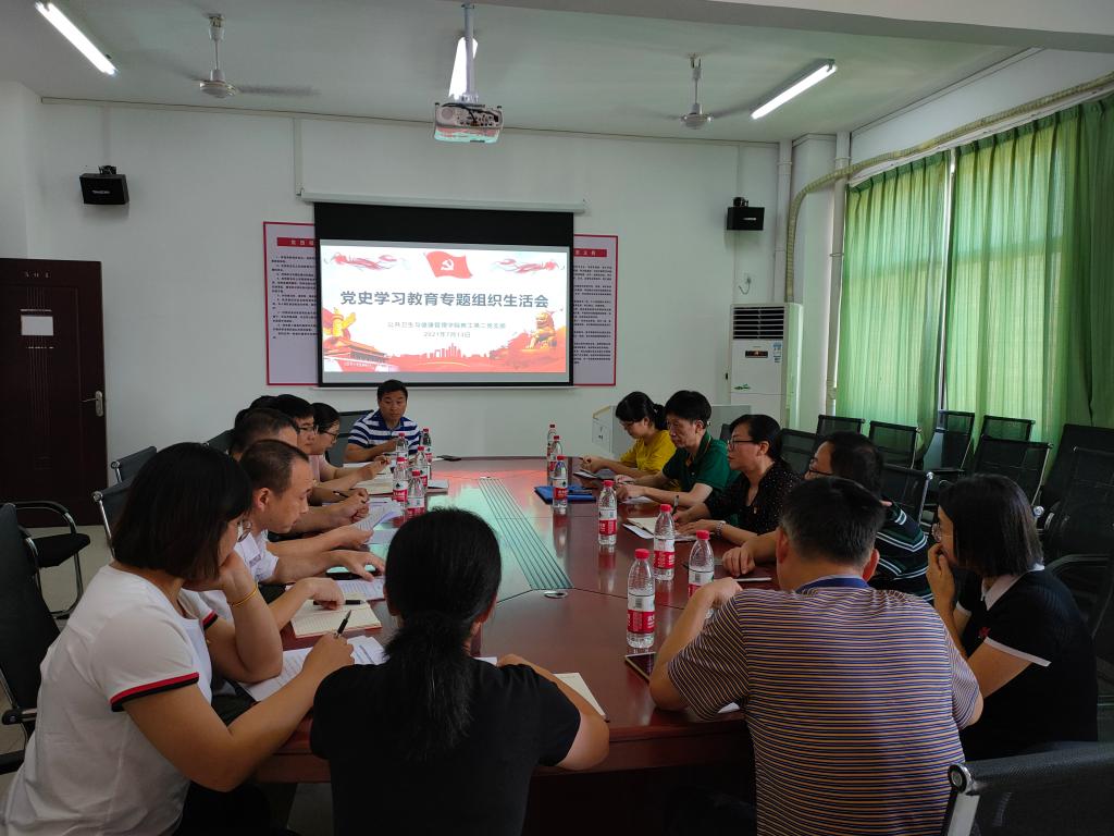 7月13日,公共卫生与健康管理学院教工第二党支部召开党史学习教育专题组织生活会。学校党史学习教育领导小组第四督导组黄明等到会指导,该党支部全体党员参加了组织生活会。