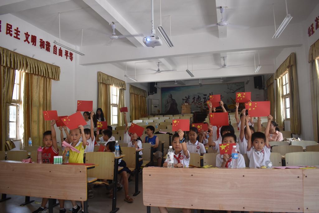 7月15日,人文社科学院组织12名大学生志愿者前往潭口镇中心小学开展“永远跟党走·奋进新时代”暑期“三下乡”社会实践活动。