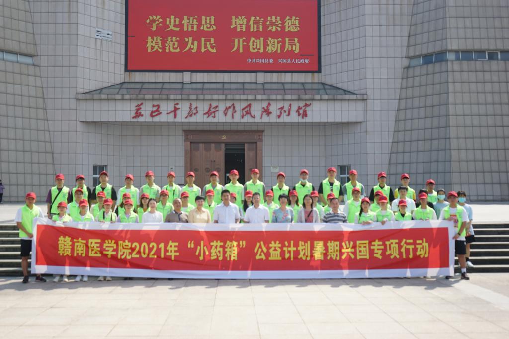 7月16日,基础医学院联合兴国县人民医院、赣州市章贡区红色文化研究会、民建赣南医学院支部委员会联合开展了以“传承红医精神 建设健康乡村”为主题的2021年“小药箱”公益计划暑期兴国专项行动。