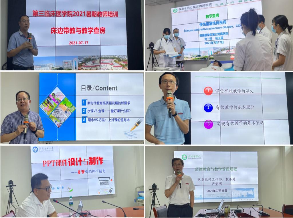 据悉,此次培训主要有五个专题讲座:严宜明教授主讲《师德要求与教学管理规程》,丁冶春教授讲授《如何打造有效课堂》,周爱琴教授通过现场模拟教学查房形式亲身传授《床旁带教与教学查房》,赣南师范大学温小勇教授带来实用性技术《PPT课件设计与制作---重塑你的PPT能力》,赣南师范大学李东斌教授讲授《教育的高质量发展需要什么样的课堂教学——兼谈课程思政》。