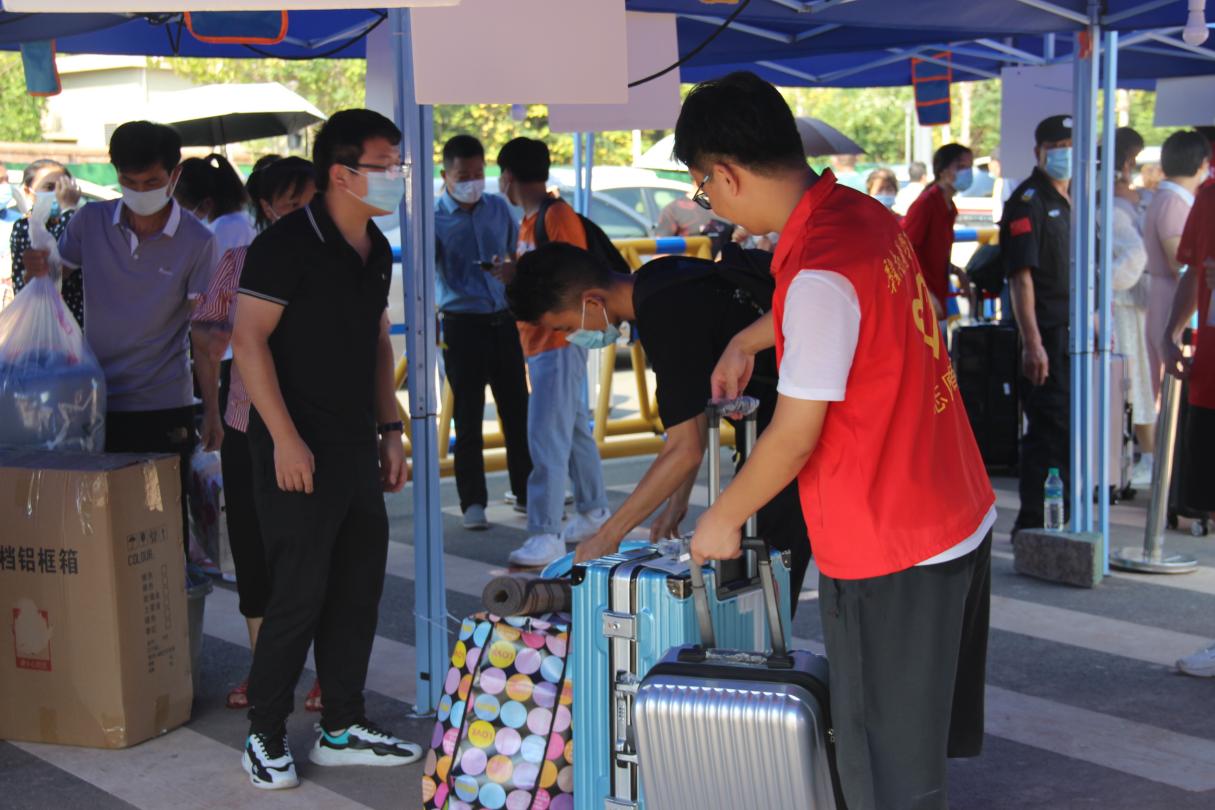 9月4日早上六点,迎新队伍就在黄金校区校门口准备就绪,骄阳似火,迎新现场到处都是党员和志愿者们穿梭忙碌的红色身影。2021级的新生们怀揣着喜悦与梦想,从四面八方来到这里,开始了他们多姿多彩的大学生活,更开启了追逐梦想的篇章。