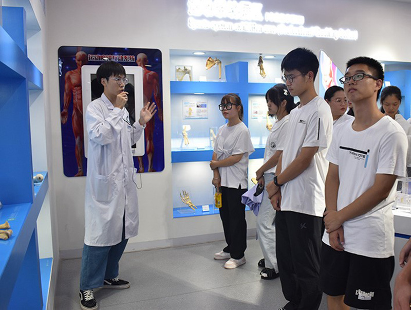 在讲解老师的带领下,新生认真聆听讲解,不时在展台前驻足观看。通过丰富的实体标本、文字材料和电子资料,了解人类在各种状态下生命活动的本质规律,体会人类生命之奥妙,感受生命之珍贵,感悟医学在维护生命健康中发挥的重要作用。