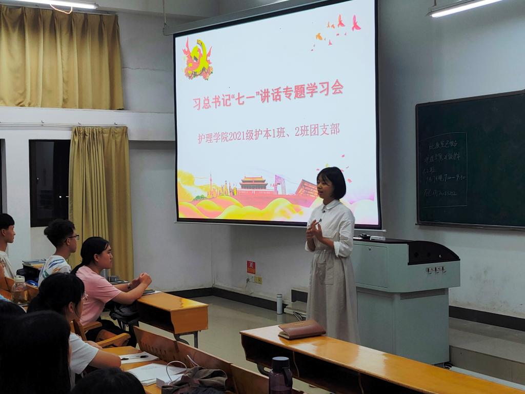 9月17日晚,护理学院组织新生团支部开展习近平总书记“七一”重要讲话精神专题学习会。