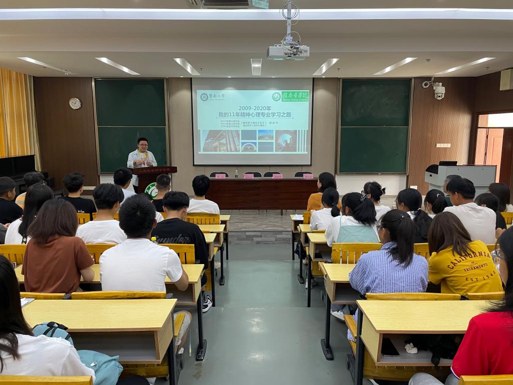 薛潮彪介绍了就职的医院、近期的研究成果和蓬勃发展的精神心理专业等,他用通俗易懂的语言、丰富全面的素材、细致耐心的解答为同学们指点迷津,让同学们对未来有更为清晰的规划。