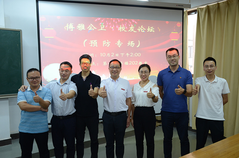 10月2日下午,由公共卫生与健康管理学院主办的“喜迎80周年校庆——博雅·公卫”校友论坛(预防医学专场)在黄金校区举办。论坛以“回顾·传承·展望”为主题,邀请了该院2005级校友赣州市疾病预防控制中心李会鹏、一附院健康管理中心谢文、2008级校友博朗健康产业(广州)有限公司江军军做客论坛。